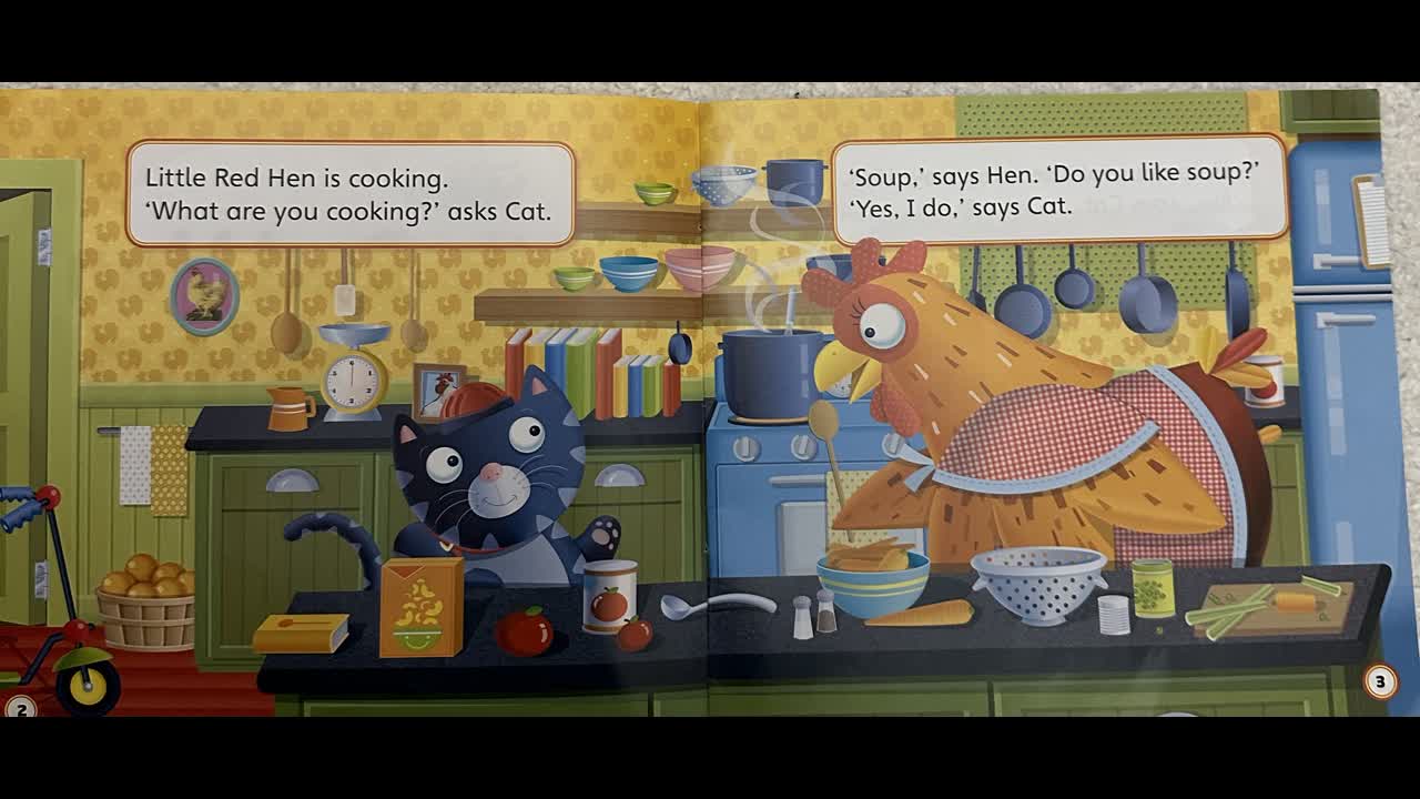 Little Red Hen is making some delicious food.Cat is watching.But he is not helping.Will Little Red Hen share her food with him anyway?Read and find out!