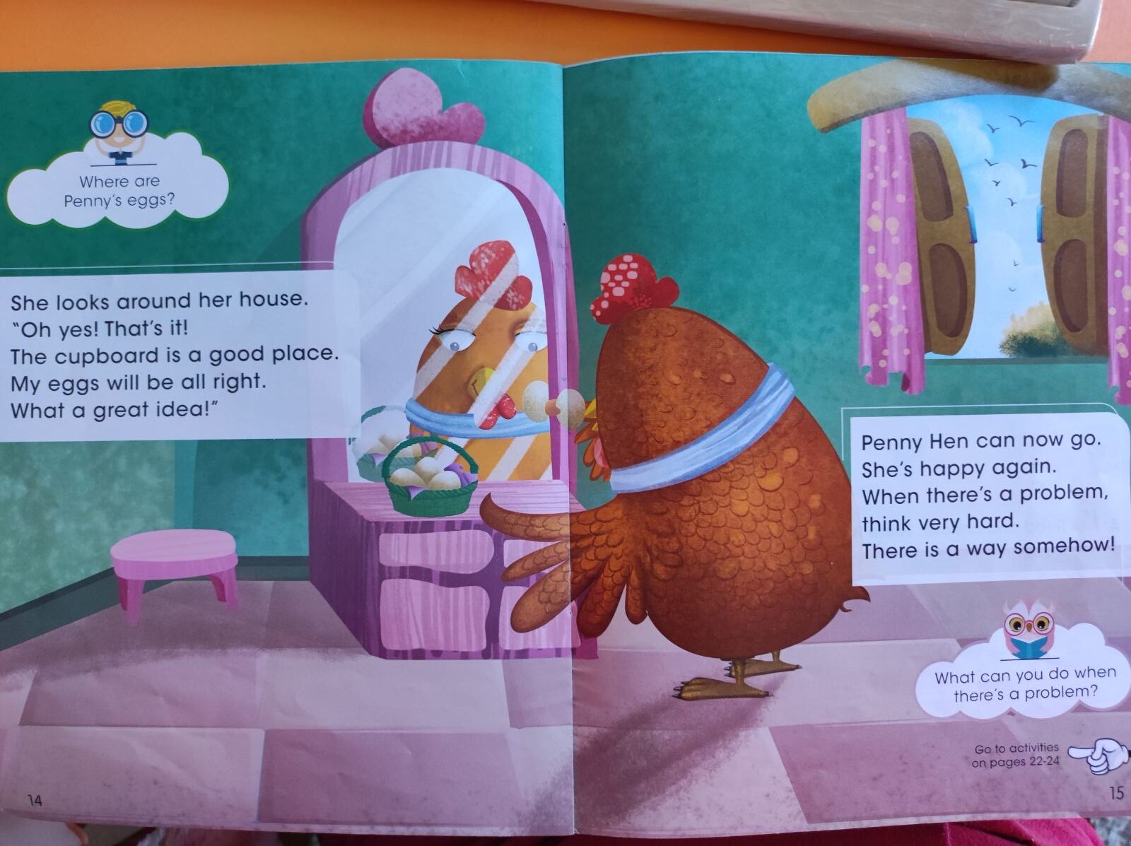 Penny Hen wants to go on a trip , but there’s one problem: she can’t take her eggs with her. Can her friends help her?