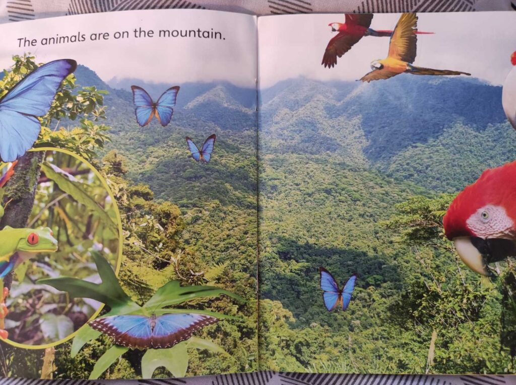 Come and explore a mountain and its many animals .