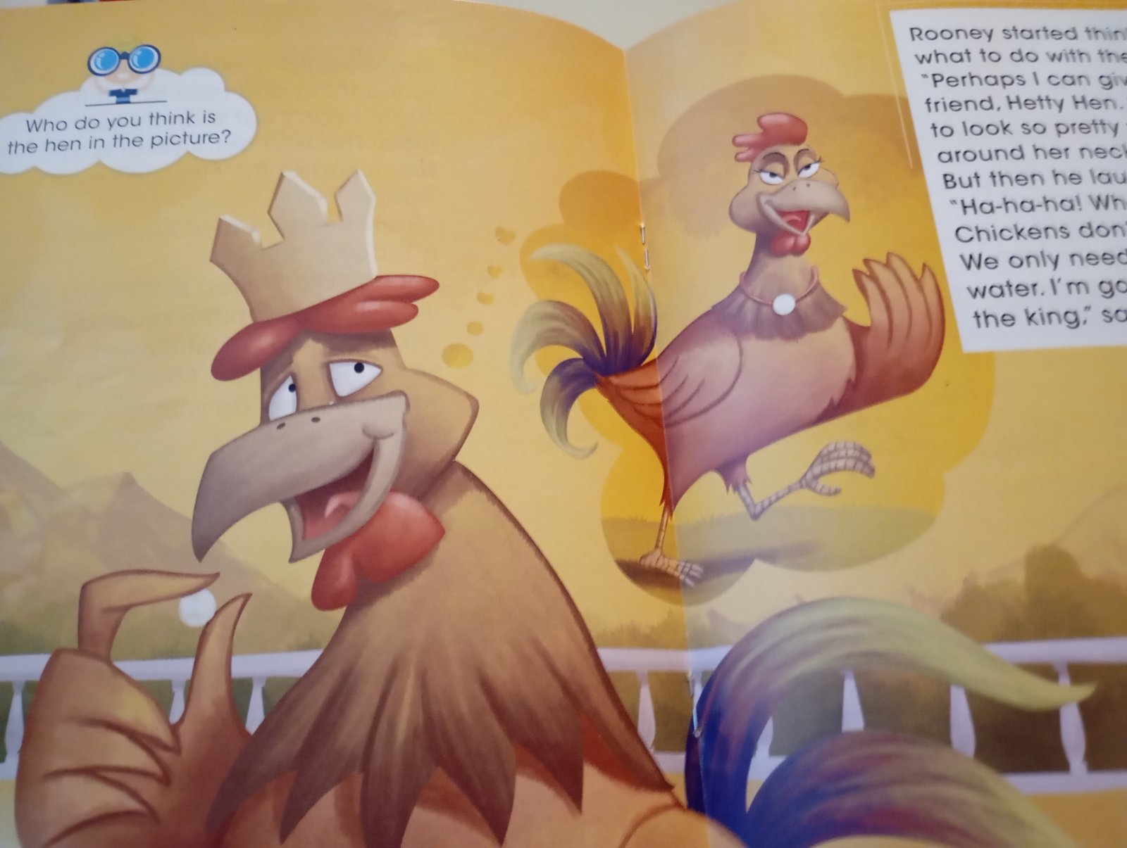 What does Rooney Rooster need to be happy ? Do crowns, titles and riches make him happy? Will a shiny pearl he findsds in thre garden make him haqppy ?